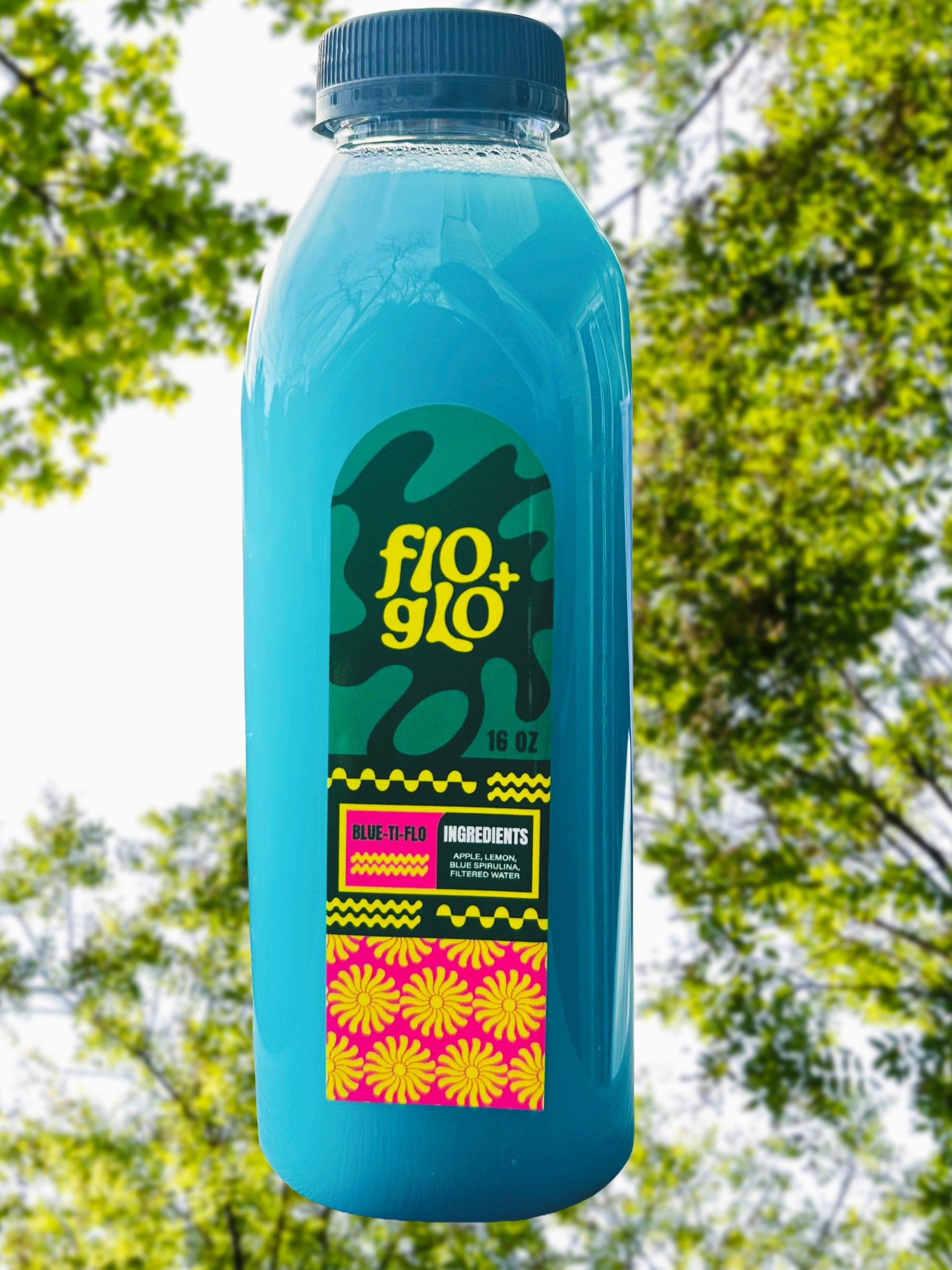 Blue-ti-Flo is a dreamy blue blend that tastes as good as it looks. Made with crisp apple, zesty lemon, vibrant blue spirulina, and filtered water, it’s light, clean, and refreshing. A perfect way to hydrate, support focus, and ride that natural high without the crash.