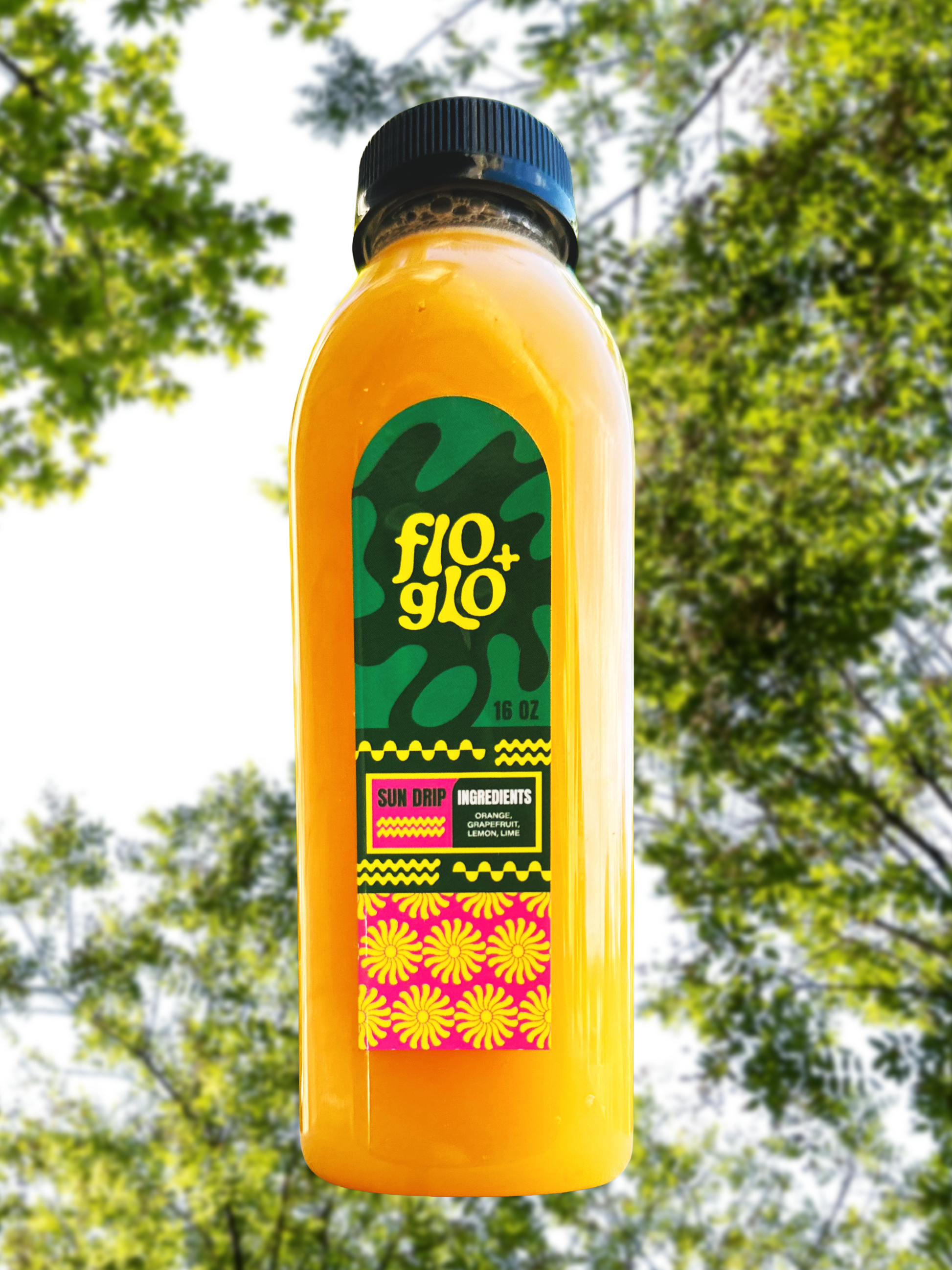 Sun Drip is pure liquid sunshine a citrus burst designed to wake up your soul and fuel your day. With orange for sweetness, grapefruit for tang, lemon for zest, and lime for balance, this juice is the perfect harmony of refreshing and bold.